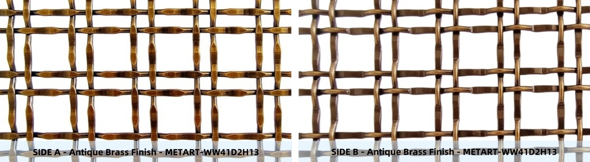 Antique Brass Plated AISI 304 Stainless Steel Woven Wire Mesh (the left one is side A, and the right one is side B)