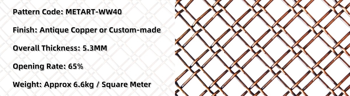 METART-WW40 is a widely used security-grade architectural metal mesh lattice pattern, designed for strength and durability.