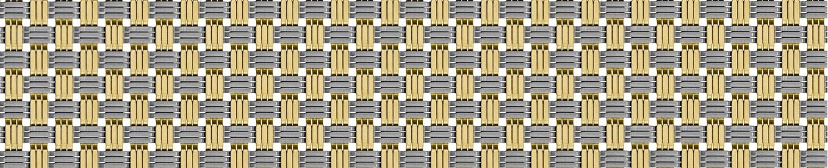 Made of a hybrid of stainless steel wires and real brass wires in different directions, this architectural woven wire pattern has a stunning feature that makes it suitable as cladding material or partition screen infills for the decoration or furnishing of high-end commercial sites or spaces.